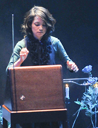 テルミンは、1920年にロシアの物理学者レフ・セルゲーエヴィチ・テルミン博士が発明した世界で一番古い電子楽器です。楽器本体に触れずに演奏する、という珍しい楽器です。演奏者は、楽器周囲で体を動かす事によって音曲を奏でます。